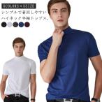 大きいサイズ 夏 半袖 半袖 メンズ tシャツ 無地 ゴルフウェア カットソー ハイネック モックネック tシャツ ティーシャツ ハイネック ゴルフt