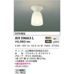 AH39663L 小型シーリングライト 60W相当 電球色 LEDランプ交換可能型 非調光 電気工事不要タイプ 小型意匠シーリング
