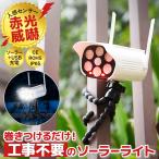 ソーラーライト 屋外 巻き付け式 ダミーカメラ 防犯カメラ型 人感センサー フレキシブルアーム IP65 USB充電 2WAY ポール 柵 木 テント キャンプ 防犯ライト