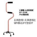 4点杖 ステッキ 2段階 4点杖 ピンク ショートタイプ 介護用品 伸縮 2段グリップ 4点杖 歩行補助 リハビリ マキテック OT-31PK