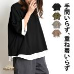 カットソー レイヤード レイヤード風 トップス レディース メンズ Tシャツ プルオーバー 半袖 五分袖 異素材 ゆったり レイヤード風トップス 切り替え 重ね着風