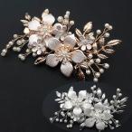 髪飾り 花A リーフ パール ビジュー 和装 洋装 結婚式 披露宴 パーティー