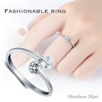レディース リング CZダイヤ 18KGP 指輪 フリーサイズ ジルコニア 2粒ダイヤ おしゃれ かわいい プレゼント
