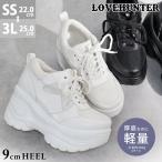 スニーカー レディース 白 厚底 9cmヒール 軽量 紐靴 No.1671 22-25cm ポイント利用