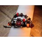 ブレスレット レザー きらきら レッド ビーズ 多重 多連 赤 茶色 重ね付け