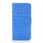 iPhone 6plus 手帳型ケース クロコダイル ワニ柄 鰐紋 ブルー 動物 マグネット 保護フィルム アイフォンケース