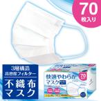 マスク 不織布 70枚入 快適やわらかマスク【オメガプリーツ型】 使い切りタイプ 遮断効率99% 3層構造 ウイルス飛沫 ほこり 花粉 エチケット
