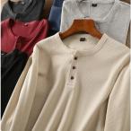 ヘンリーネック tシャツ ワッフル サーマル メンズ ロンt 長袖 インナー シンプル カットソー ヘンリーt ワッフルt サーマルt