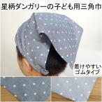子供用 三角巾 ゴム ゴム付き ダンガリー 星柄 綿 水色 紺