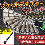 ソケットアダプター 10個+1本 セット 6.35mm 六角 ボルト ナット 電動工具 インパクトドライバー 六角レンチ ソケット DIY 工具