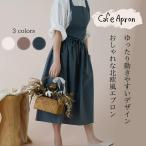 おしゃれ北欧風 2wayコットンリネンエプロン 綿痲 ロングワンピース風エプロン ナチュラル 体型カバー