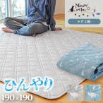 ひんやり涼感ラグ 2畳 190×190cm 夏 夏用 ねこ柄 すべり止め 洗える接触冷感ラグ クール カーペット ミャオリラ