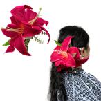 フラダンス 髪飾り カサブランカ ヘアクリップ 赤ピンク