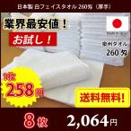 【送料無料】業界最安値! 8枚セット 〜 日本製 泉州 白タオル 厚手 260匁 / タオル 普通のタオル 白いタオル 業務用タオル フェイス 白 ホワイト 業務用 床屋