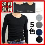 Tシャツ メンズ 長袖 Uネック Vネック 黒 白 ネイビー グレー ブラック ホワイト フライス 丸首 V首 カットソー ベーシック M L XL インナー