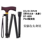 杖 折りたたみステッキ 太身 おしゃれ 上品 伸縮 カラフル 先ゴム エコノミーステッキ ブラック OT-009