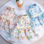 かわいい新作 犬 猫 服 花柄 小型犬用 切り替えワンピース カラフル 女の子向け フリル付き ペット服 お出かけ・お散歩用【a213】【送料無料】