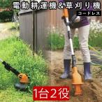 電動耕運機 草刈り機 耕うん機 家庭用 農業用 コンパクト パワフル 軽量 充電式 コードレス 農業用品 園芸機械 ガーデニング 畑 家庭菜園 2way 耕運機&芝刈り機