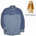 [ハッシュパピー] シャツ 長袖 デニムシャツ お洒落な切替 ワークシャツ カジュアルシャツ