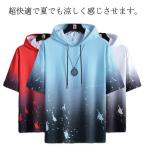 半袖パーカー メンズ プルオーバー パーカー 半袖tシャツ 切り替え スポーツ 半袖パーカー 夏 ひんやり フード付き 接触冷感 吸汗速乾 大きいサイ