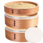 杉せいろセット 21cm 2段 蒸し器 中華 せいろ ステンレスリングで補強 コットンセイロ専用シート2枚付 天然木 天然竹 蒸し野菜 小籠包
