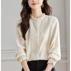 ブラウス 立ち襟 フリル レディース 長袖 シャツ 無地 白 襟フリル トップス シフォン シャツブラウス 薄手 春 夏 秋 可愛い