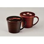マグカップ フタ付 溜内アイボリー赤べこ・春慶内朱起き上り小法師・ 手描き 電子レンジ 食器洗浄機対応 伝統工芸品 25-69-7