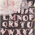 お花が可愛いアルファベットワッペン 大きいサイズ アルファベットアップリケ イニシャルワッペン 文字アイロンワッペン