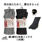 シルク 靴下 5本指 メンズ 3足組 24-27cm 黒 絹混 吸湿 保温 オールシーズン 土踏まずサポート フィット レギュラー丈 天牛 富士手袋工業 絹はいいぞぉ No.165-3