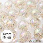ビーズ 大粒 14mm 30個 両穴 穴あり ビー玉風 ラメ入り ゴールドラメ 光沢艶玉 オーロラ加工 丸玉 アクリルビーズ ラメビーズ ピアスパーツ