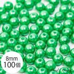 パールビーズ ビーズ 8mm 100個 両穴 樹脂ビーズパーツ アクセサリー ハンドメイド グリーン 濃緑 ピアスパーツ