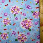 リップル生地 ( サッカー生地 ) 金魚とあじさい ( ブルー系 ) 生地幅−約110cm( 綿100% )( リップル 甚平 ジンベイ じんべえ パジャマ 夏素材 )
