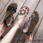 サンダル 花飾り サマーサンダル レディース 美脚サンダル 大きいサイズ ぺたんこ かわいい トレンド ローヒール 軽い 可愛い