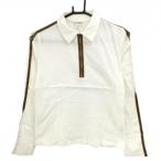 ランバンスポール 長袖ポロシャツ 白×ブラウン ハーフジップ 袖ライン レディース 36(S) ゴルフウェア LANVIN SPORT