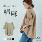コットン リネン シャツ ブラウス 生地 レディース 綿 麻 トップス フレアスリーブ プルオーバー 5分袖 半袖 ゆったり オシャレ 韓国風 大人 30代 40代 50代