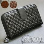 訳ありセール 長財布 メンズ ロングウォレット ラウンドファスナー 小銭入れ 編み込み メッシュ フェイクレザー