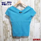 トップス 半袖ニット 無地 レディース Vネック 半袖 ウール100% 毛 ターコイズブルー サマーニット 送料無料