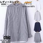 ロング シャツ ブラウス 【宅急便発送】トップス チュニック 長め丈 長袖 羽織り バンドカラー ビッグシルエット 綿 ガーゼシャツ ギンガムチェック 立ち襟