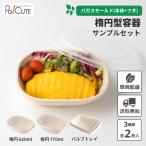 「サンプルセット:楕円型容器セット」使い捨て 容器 弁当箱 テイクアウト ランチボックス 業務用 セパレート レンジ 冷凍 持ち帰り パルプモールド