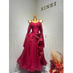 即納 社交ダンスドレス モダンドレス ラテンドレス フロート フリルフロート 1セット 赤