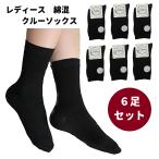 【6足セット】レディース 靴下 綿混 コットン 平編み クルー丈 薄手 黒 ソックス