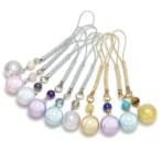 メール便 開運! 水琴鈴 & 天然石 根付 ストラップ キーホルダー 丸玉 ミュージックボール ハーモニーボール ガムランボール 鈴の音