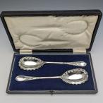 英国アンティーク シルバープレート製 サービングスプーン ペア ケース入