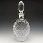 1977年 英国ヴィンテージ カットガラス オーバル型デキャンタ 純銀装飾 1750g