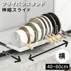 引出し式 横 フライパンスタンド スライド 伸縮 コンロ下 シンク下 フライパン収納 キッチン収納 鍋 なべ 蓋 立てる収納 調理器具 フライパン置き キッチン
