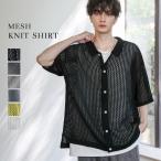 サマーニット メンズ シャツ クロシェ メッシュ シアー 編み シャツ 涼しい 透かし編み S M L