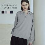 ヘンリーニット ニット メンズトップス シアー ブークレ 襟付き 無地 シンプル レイヤード 透け感