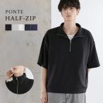 ハーフジップ メンズ カットソー ドロップショルダー 春 春服 夏 夏服 防シワ 抗ピリング 伸縮性 半袖 ポンチ ジップ シンプル 無地 ストレッチ ポリエステル