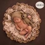 熊寝相アートの3点セット、ニューボーンフォト、記念撮影、寝相マット、帽子、ぬいぐるみ、新生児、ベビーマット