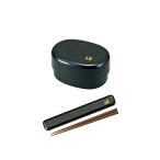 House Hold(ハウスホールド) 小判 弁当箱 2段 黒 地紋うさぎ 580ml + 箸 箸箱 セット 送料無料 和風 ランチボックス 日本製